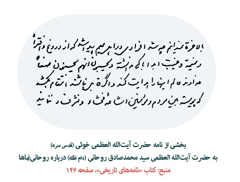 ب: بخشی از نامه حضرت آیتالله العظمی خوئی (قدسسره) را که درباره روحانینماها نوشته شده و در صفحه 146 کتاب نامههای تاریخی به چاپ رسیده است: